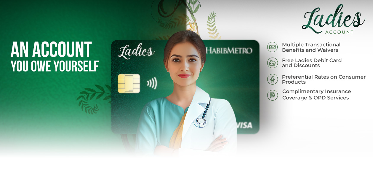 From catering to your transactional needs to fulfilling your financial requirements, HABIBMETRO Ladies Accounts are tailor-made solutions that provide women with a seamless banking experience while giving them a sense of security.